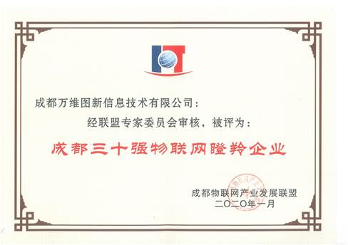 2019年既是“感知中国”中国物联网战略提出的第十年,又是2018年中央经济工作会议上首次部署加强物联网为代表的新型基础建设设施的一年。1月8日,由四川省物联网产业发展联盟主办的第二届物联网产业创新发展大会暨2019年物联网产业年会中,我司荣登成都三十强物联网瞪羚企业榜单。