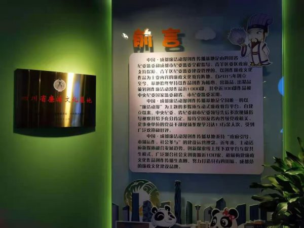 我司廉洁动漫创作传播基地由四川省纪委监委和成都市纪委监委全程指导、青羊区委区政府支持保障、青羊区纪委临委建设管理,以廉洁文化作品创作、党风廉政警示教育为主题,自2015年创立以来,主动适应新媒体融合发展趋势,创新探索线上线下双平台互促共生模式,具有较强的时代性和地方特色,同时也赋予了鲜明的时代内涵。目前,已广泛聚合社会文创资源近百家,积极构建廉政文化作品创作传播生态圈,打造具有四川味、成都范的廉政文化建设品牌。下一步将充分运用传统媒体及新媒体平台的影响力,扩大廉洁文化的传播力度,为推进全面从严治党营造良好的文化宣传氛围。