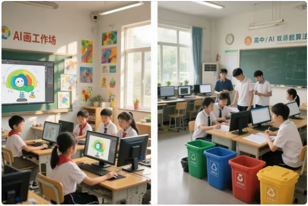 《中小学AI通识教育指南》划定生成式AI使用边界(如小学禁用独立开放式生成功能),构建教师审核与学生探究双轨机制。